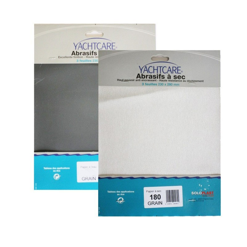 Gamme d'ABRASIFS, pour ponçage à sec et à l'eau, spécialement conçue pour l'ensemble des travaux de peinture et de réfection des bateaux.