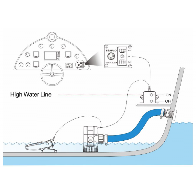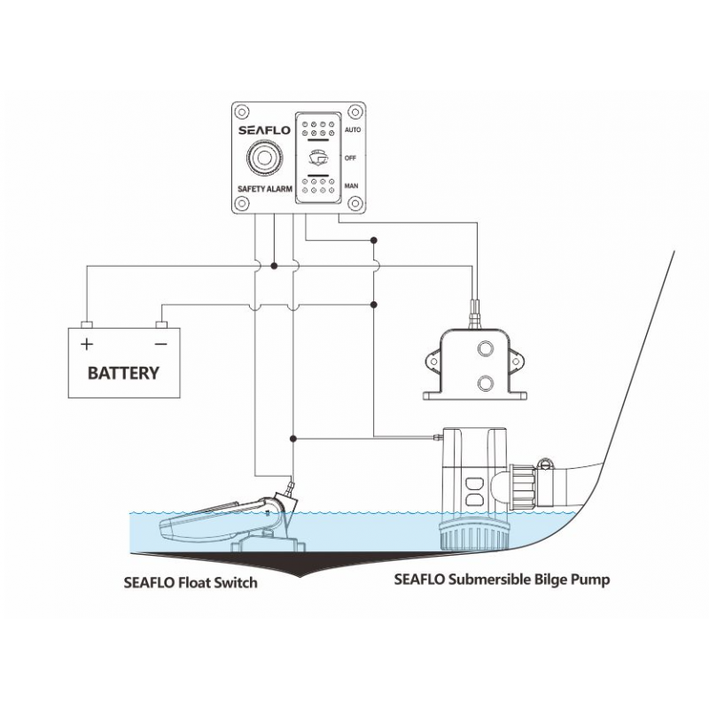 - L'interrupteur de cale est conçu pour gérer toutes les pompes de cale SEAFLO jusqu'à 10 ampères à 24V.