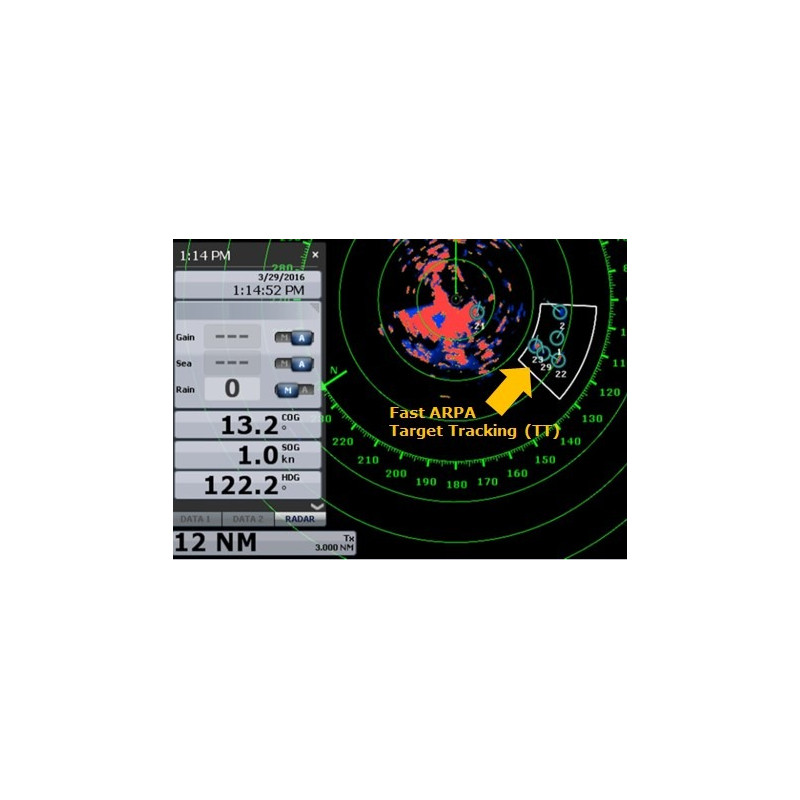 - Suivi de cibles Target Tracking™ (TT) / ARPA jusqu'à 10 cibles simultanément.