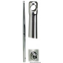En inox AISI 316 poli miroir. Se fixe à la base à l’aide d’une vis qui permet au chandelier de tourner sur la base pour un alignement parfait avec la gouttière.