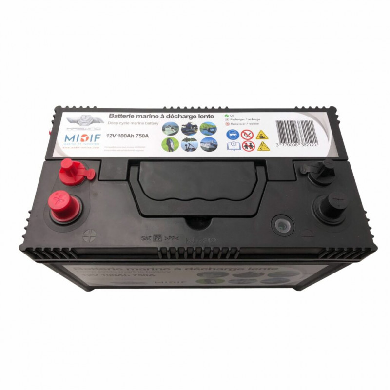 - Capacité 100 Ah : autonomie adaptée aux moteurs électriques et équipements embarqués.