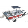 T-TOP en aluminium, idéal pour vous protéger du soleil lors de vos sorties bateau. Ce t-top robuste est équipé du tube en aluminium de 32 mm de diamètre. Il s'installe directement sur la console soit latéralement de chaque coté de la console, soit de manière frontale à l'avant de la console (voir photo). Il s'adapte à la plupart des console, même les plus petites. Le pare-soleil en polyester peut-être rétracté ou enlevé.