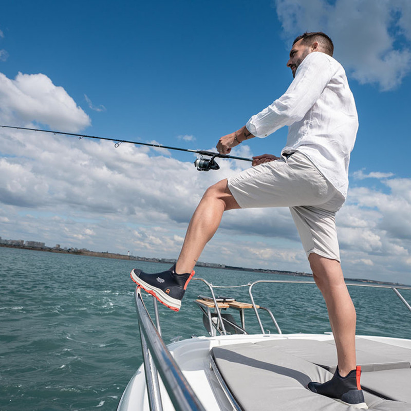 De plus, elles sont dotées de semelles anti-dérapantes qui ne marquent pas sur le pont du bateau.