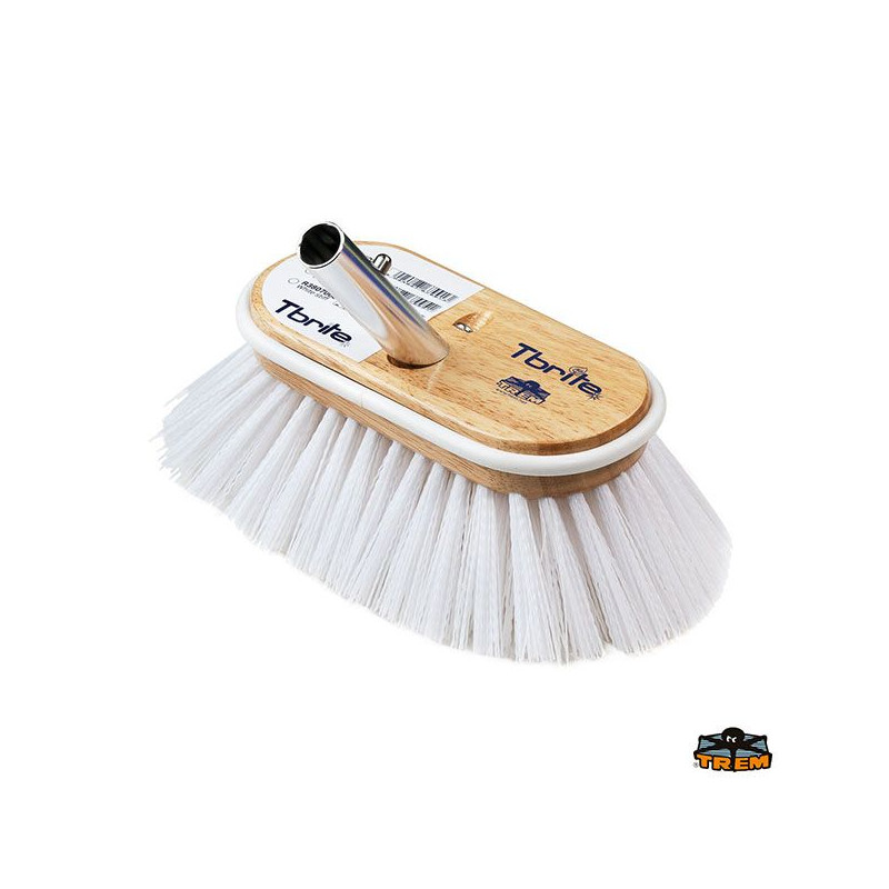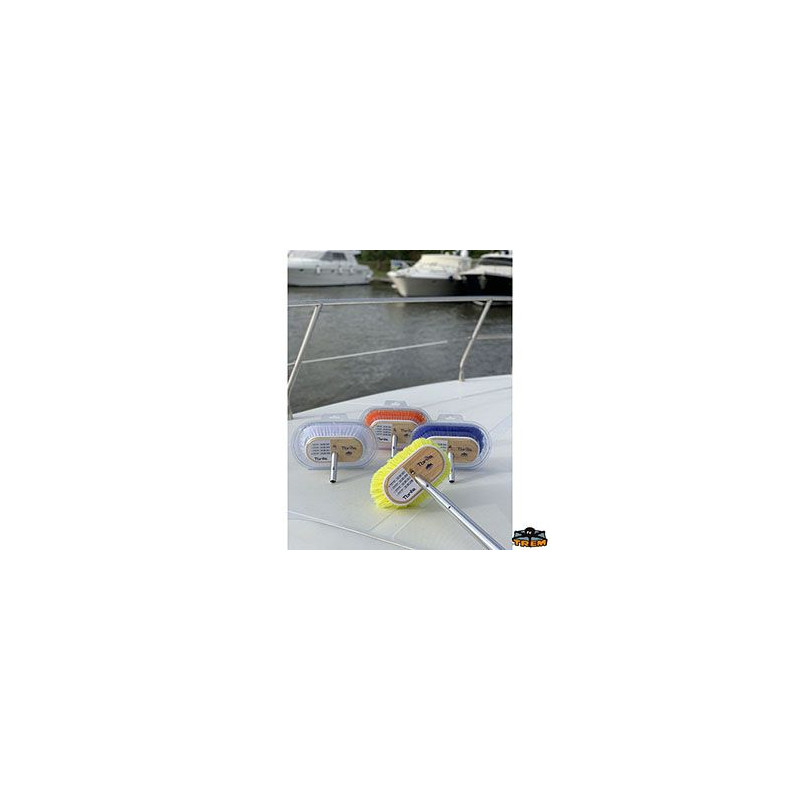 Brosse dure en polyuréthane avec socle en bois anto-chocs, résistante aux produits chimiques et spécialement conçue pour le nettoyage des ponts en teck, et ponts standard, idéale pour les parties antidérapantes du pont... Ne pas utiliser sur les surfaces sensibles comme les surfaces peintes et les surfaces vitrées. Connecteur aluminium rapide