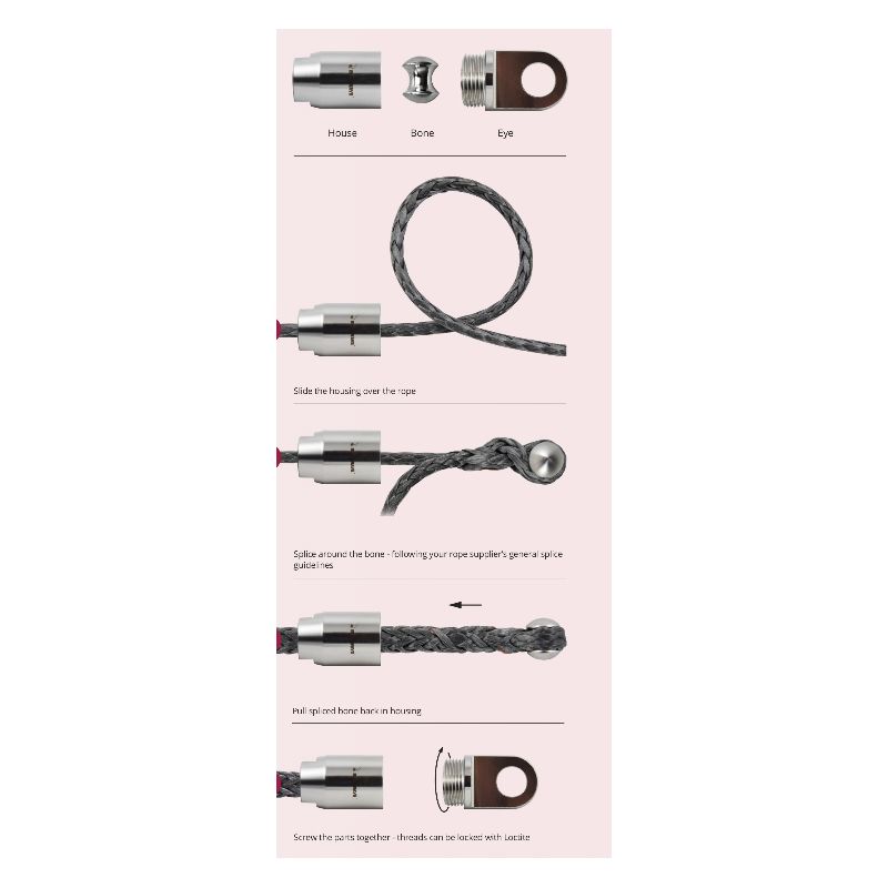 Terminal a sertissage manuel en inox 316L pour cordage a tresse creuse (type tresse dyneema ou Jackline polyester)