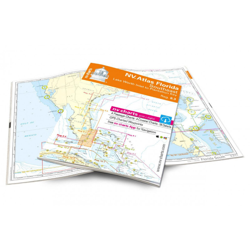 - Format d'Atlas NV Charts : les cartes nautiques de NV Charts sont disponibles dans un format d'atlas, joint au milieu avec une agrafe plate pour une utilisation optimale lors de la navigation. L'atlas est ouvert en format A2, fermé il est en format A3, il est ainsi livré dans un plastique qui protège le papier contre les éclaboussures d'eau.