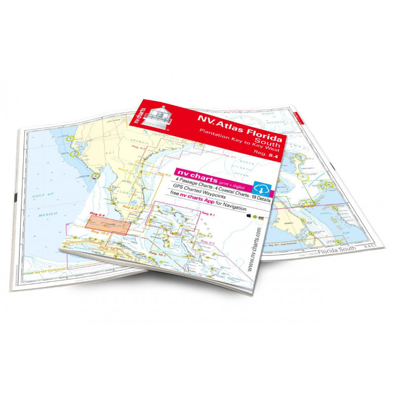 - Format d'Atlas NV Charts : les cartes nautiques de NV Charts sont disponibles dans un format d'atlas, joint au milieu avec une agrafe plate pour une utilisation optimale lors de la navigation. L'atlas est ouvert en format A2, fermé il est en format A3, il est ainsi livré dans un plastique qui protège le papier contre les éclaboussures d'eau.