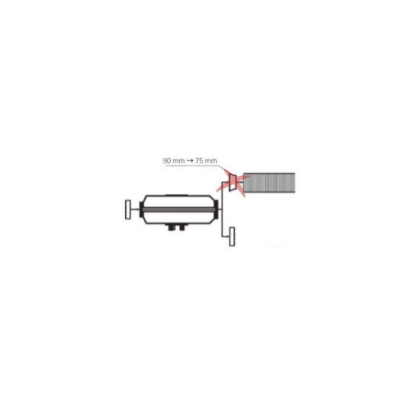 Si vous souhaitez mettre cet adaptateur sur votre conduit d'air Ø 90 mm, pour le réduire en Ø 75 mm, il faut ajouter le manchon connecteur Ø 90 mm (DE023) entre la gaine de chauffage et l'adaptateur (voir schéma).