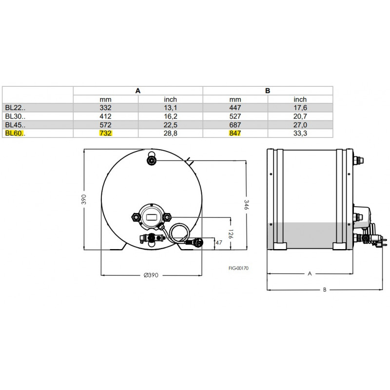 Chauffe-eau bateau et camping-car émaillé - 390 mm - 60 Litres - ATI