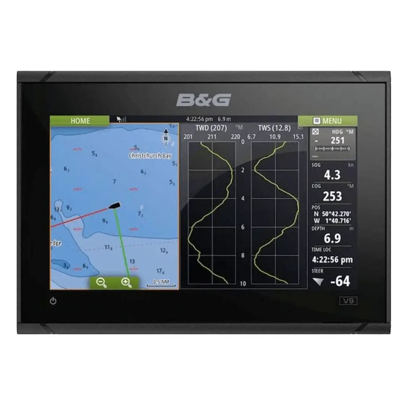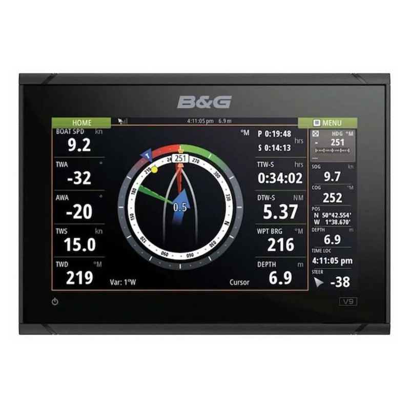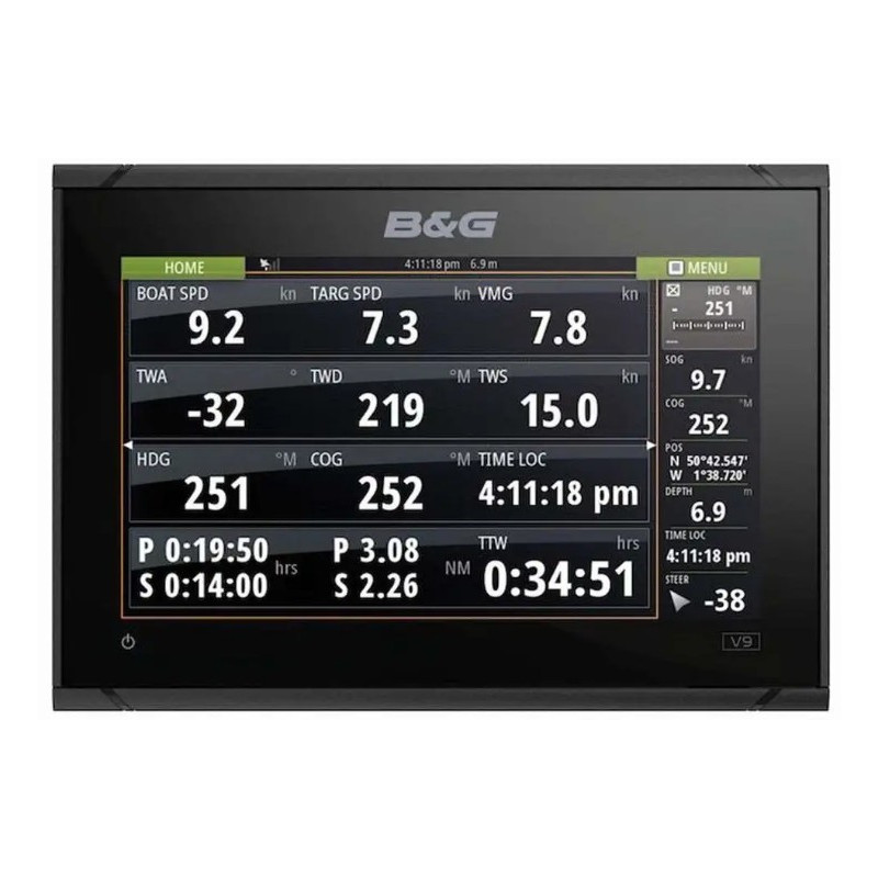 Le traceur de cartes Vulcan 9 FS comporte une interface de navigation dédiée, qui vous permet d'accéder à des fonctionnalités primées B&G telles que SailSteer (Pilote voile), les laylines et Sailing Time.