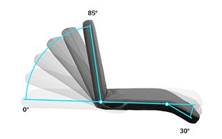6 positions du dossier adaptable de 0° à 85° et 2 positions adaptables du dossier et du repose pieds.