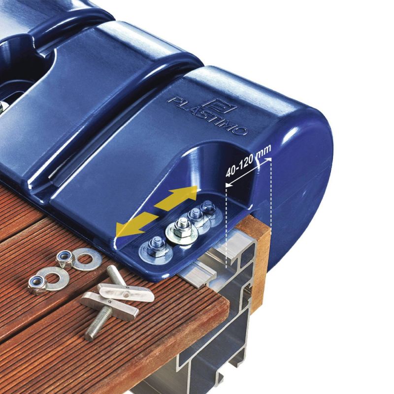 Positionner le bumper à l’endroit souhaité sur le quai ou le ponton. Installer les éléments de fixation puis serrer solidement afin de garantir un maintien stable.