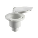 Coque encastrable blanche pour douche de pont, avec capuchon et joint étanche. Permet une installation soignée du support de douche, avec sortie d’eau arrière, pour une utilisation à bord sans fuites.
