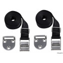 Fixation au plancher à l'aide de 2 plaques inox (fournies) et sangle réglable par boucle inox autobloquante.
