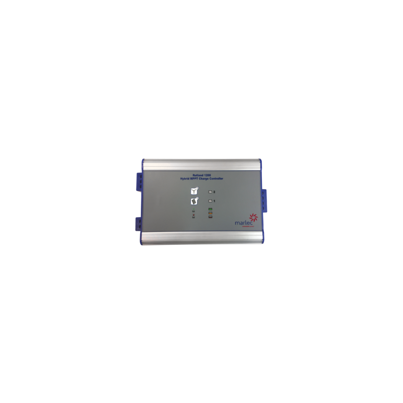 Le contrôleur est un élément clé de la conception holistique du Rutland 1200 par Marlec, fournissant une intelligence pour gérer la production d'énergie renouvelable jusqu'à 2 bancs de batteries.