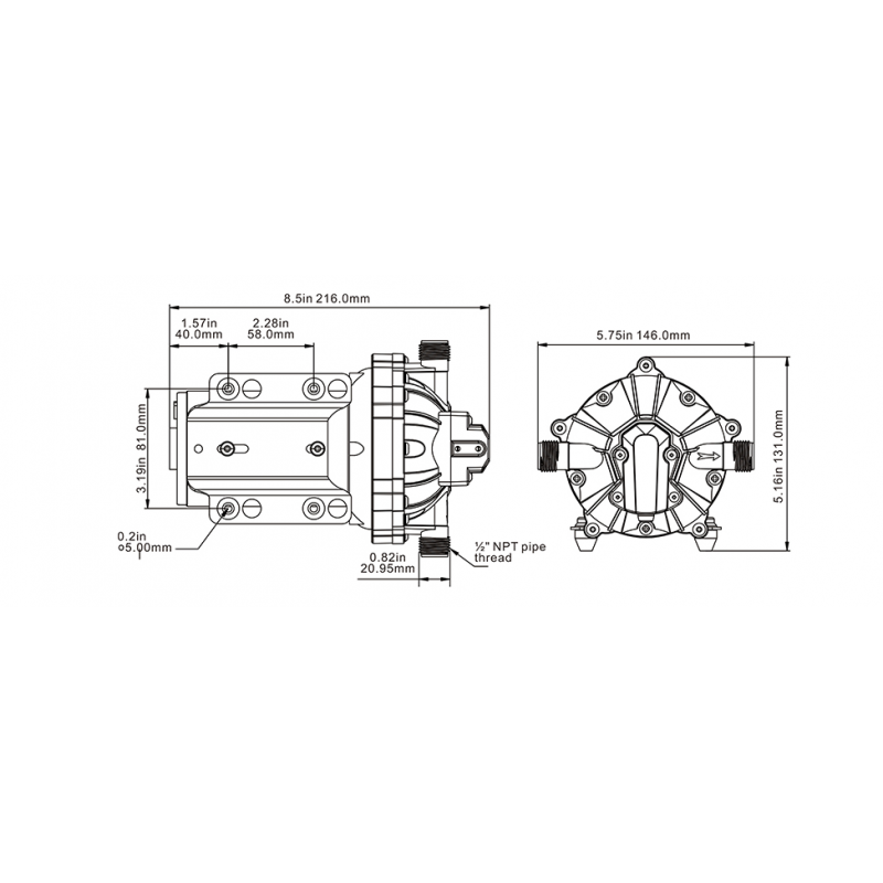 Pompe : Fonctionnement sur simple pression de la gachette du pistoler, fonctionne à sec sans danger, raccordement facile et rapide. Pompes à diaphragme 3 chambres. Prise d'eau à une hauteur max de 1.8m. Pression max : 4.8 bars.