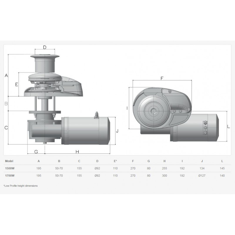 Caractéristiques techniques du guindeau électrique X3 sans poupée d’une puissance de 1700W :