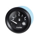 Indicateur analogique compact pour réservoirs d'eau ou de carburant. Cadran marqué « TANK », diamètre 52 mm, adapté à tout liquide. Gamme de résistance 10–180 Ω pour compatibilité avec une large variété de sondes.