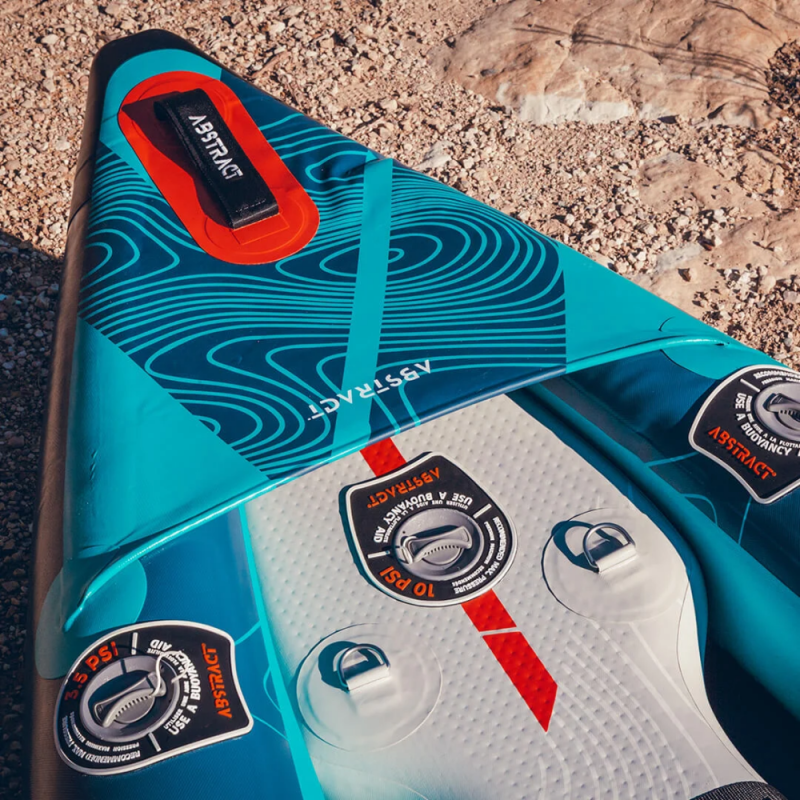 - Détails : trous autovideurs avec bouchons, élastique de stockage, support pagaie en Velcro, poignée de transport, valve de gonflage Abstract C