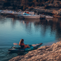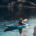 Dépliez le kayak sur une surface propre, puis gonflez les chambres à l’aide de la pompe en respectant les recommandations de pression indiquées dans la notice. Installez l'aileron, assemblez la pagaie, puis mettez à l’eau depuis une zone accessible. Ce modèle est particulièrement adapté aux balades sur eaux calmes : pagayez progressivement pour prendre en main la trajectoire et optimiser la glisse.