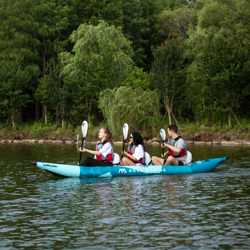 • Pack complet : 3 sièges + 3 pagaies + pompe + sac inclus.