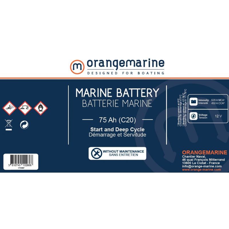 La batterie Dual Orangemarine est une batterie Dual pour bateau qui convient pour le démarrage et pour la décharge lente sur votre bateau. Elle est donc conçue pour assurer le démarrage de votre moteur in-bord ou hors-bord, et pour alimenter en électricité vos appareils à bord.