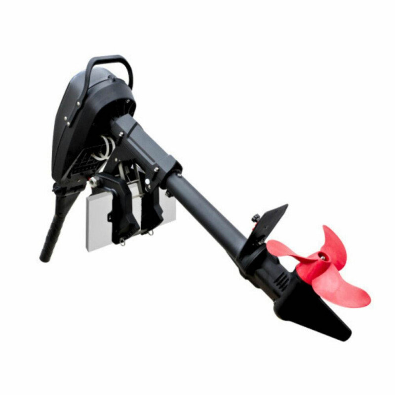Utilisation : installer le moteur sur le tableau arrière, connecter le pack batteries 48 V, ajuster l’inclinaison et rincer soigneusement après utilisation en milieu salin.