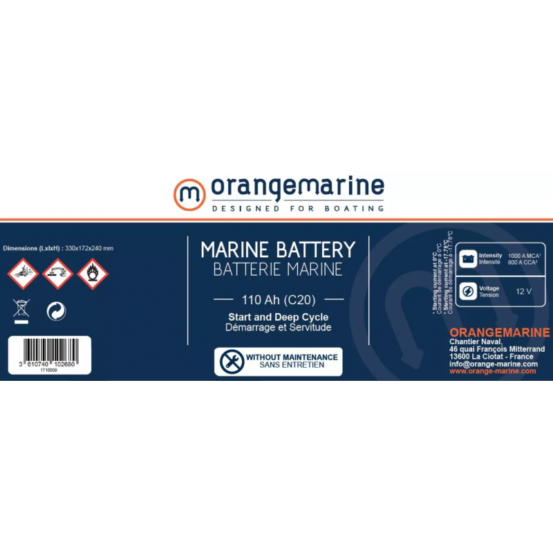 ✓ Batterie marine 12V 110 Ah Orangemarine