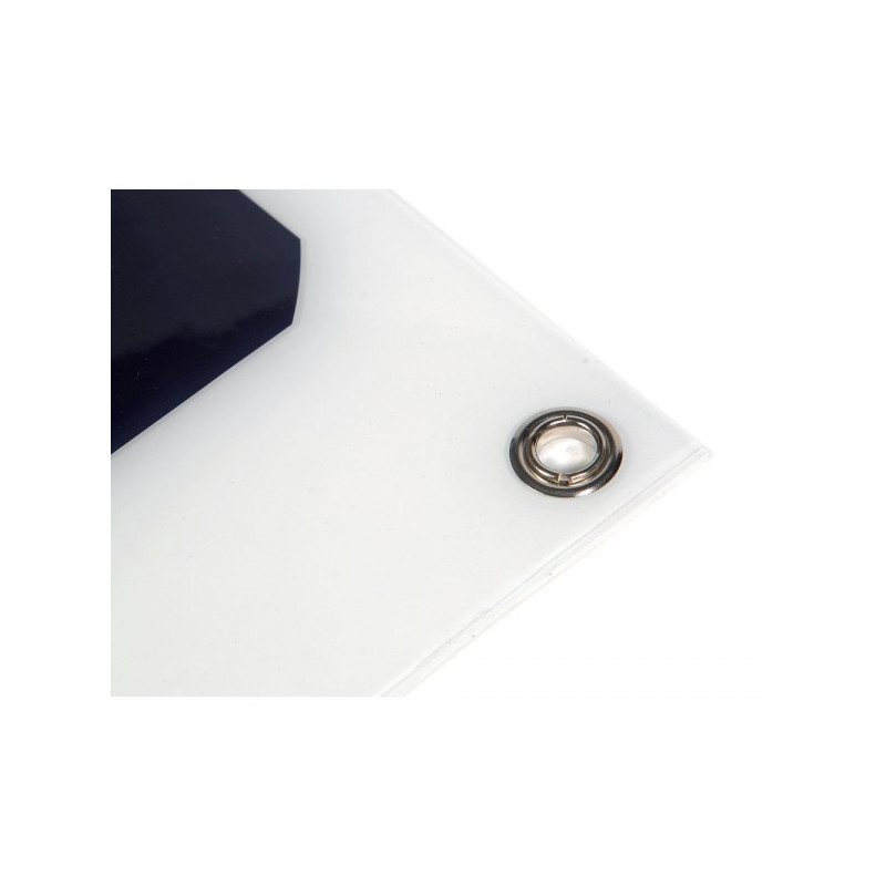 L’option de fixation par oeillets (x4 ou x6 sur commande), facilite le montage du panneau et permet la mobilité de votre panneau selon vosbesoins (Bimini, pont,taud...)