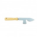 Détroquoir à huitre en acier doté d'une poignée en bois. Cette outil est équipée d'une lame large et robuste pour l'ouverture des huitres et d'une partie taillante en forme de hachette qui permet de décrocher les huitres des rochers ou de séparer les huitres qui sont collées entre elles.