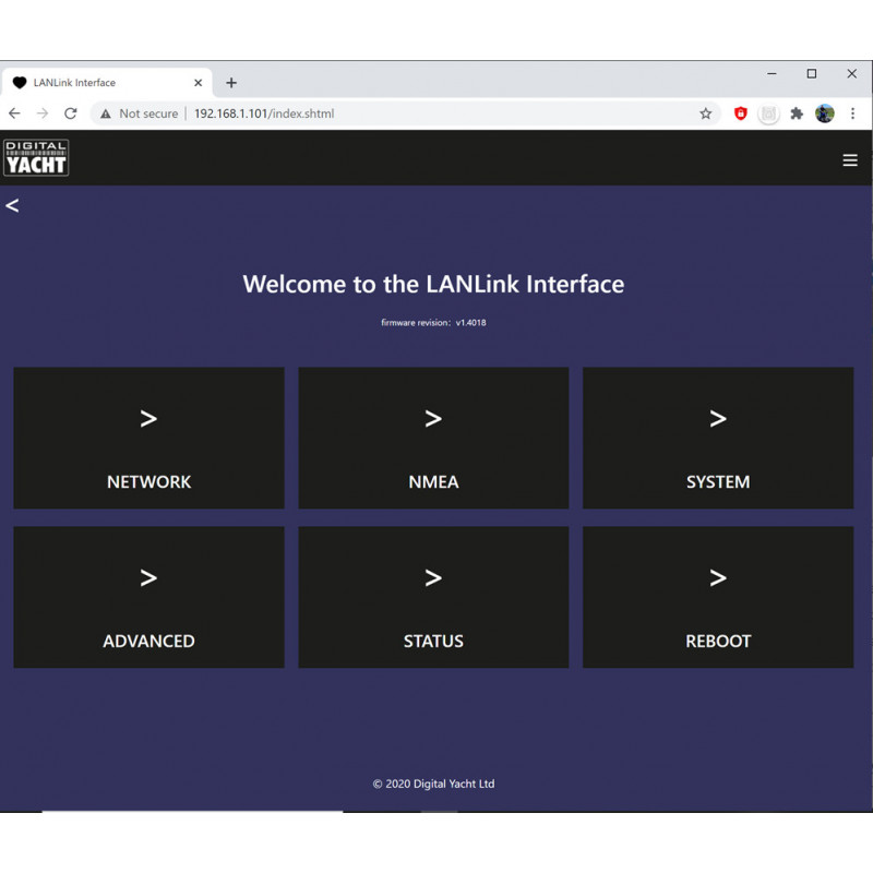 LANLink est disponible en deux versions : NMEA 0183 et NMEA 2000. Il est doté d’une interface web facile à utiliser qui permet à n’importe quel appareil mobile, tablette ou PC de configurer la vitesse des données NMEA et les informations réseau.