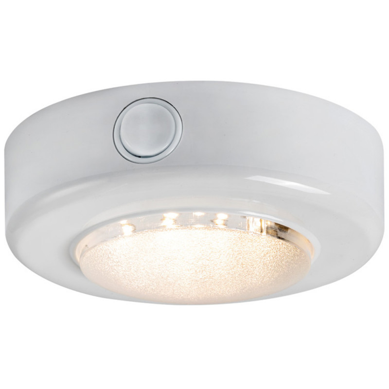 Plafonnier LED blanc en ABS avec lentille opaline et interrupteur intégré, idéal pour les espaces intérieurs ou abrités à bord.