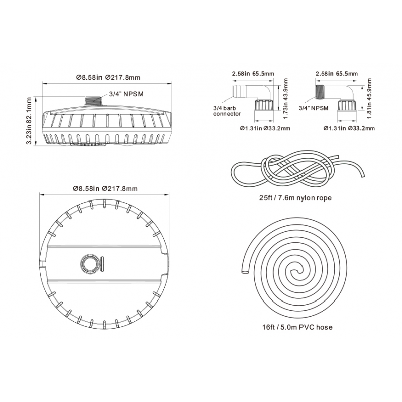 - Diamètre de sortie: 3/4"