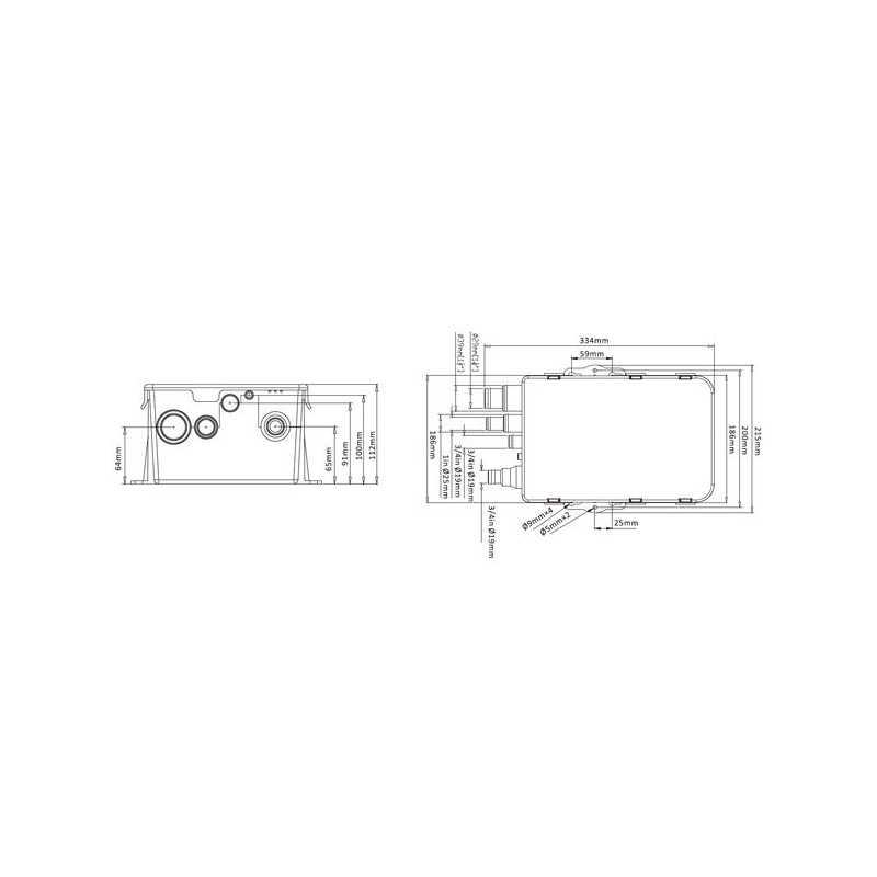 - 3 entrées à déboucher : 19 mm, 25 mm , 38 mm