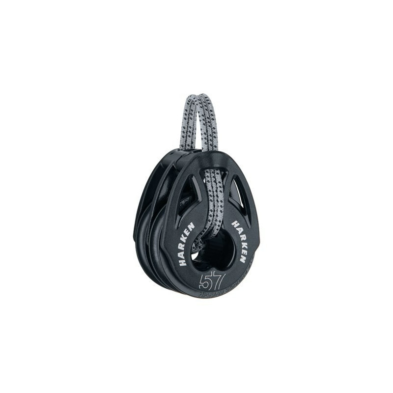 En version simple ou double, les poulies T2™ peuvent être fixées par transfilage noué ou épissé à quasiment n’importe quel élément. Sur les modèles 29, 40 et 57 mm, les chemins de roulements à billes en Delrin® des réas en composite présentent une surface courbe favorisant leurs performances. Dépourvues de rivets ou manilles métalliques, ces poulies à fixation par transfilage sont les plus légères de la gamme Harken. Sur tous les modèles T2, la fixation par transfilage passe au travers du centre qui encaisse les charges, réduisant les contraintes exercées sur les joues et sécurisant le système. Ces poulies peuvent être utilisées pour le réglage de chariots, d’écoutes de grand-voile ou de hale-bas, la réalisation de palans étagés ou de pattes d’oie et tout autre système imposant le recours à des poulies légères.