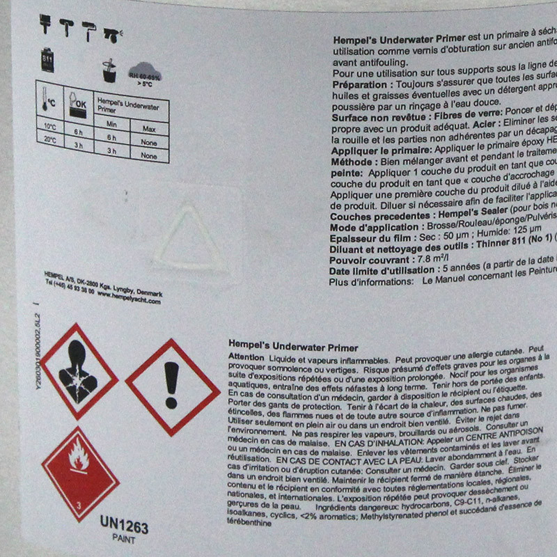 Le primaire Antifouling HEMPEL Underwater Primer mono-composant est un primaire à séchage rapide, contenant des écailles d'aluminium. Ce primaire est à appliquer comme dernière couche avant votre Antifouling, est peut être utilisé aussi bien comme vernis d'obturation sur votre ancien antifouling que comme couche d'accrochage suite à l'application d'un primaire époxy.
