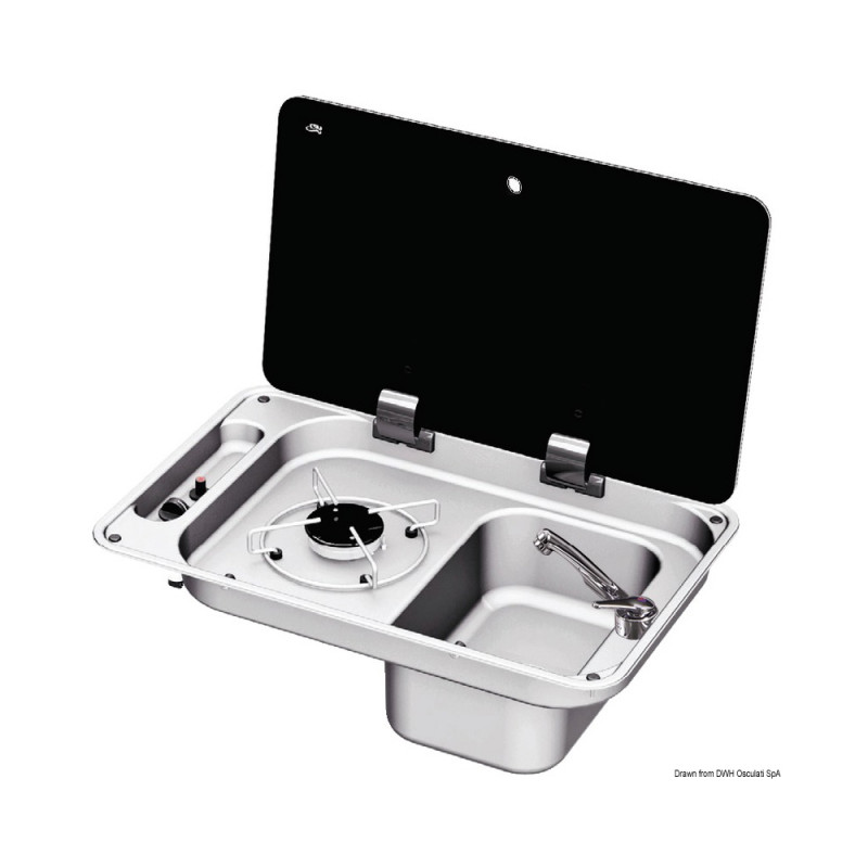 Vous recherchez une solution de cuisson compacte et fonctionnelle ? Le plan de cuisson Osculati propose un brûleur gaz unique associé à un couvercle en verre fumé rabattable.