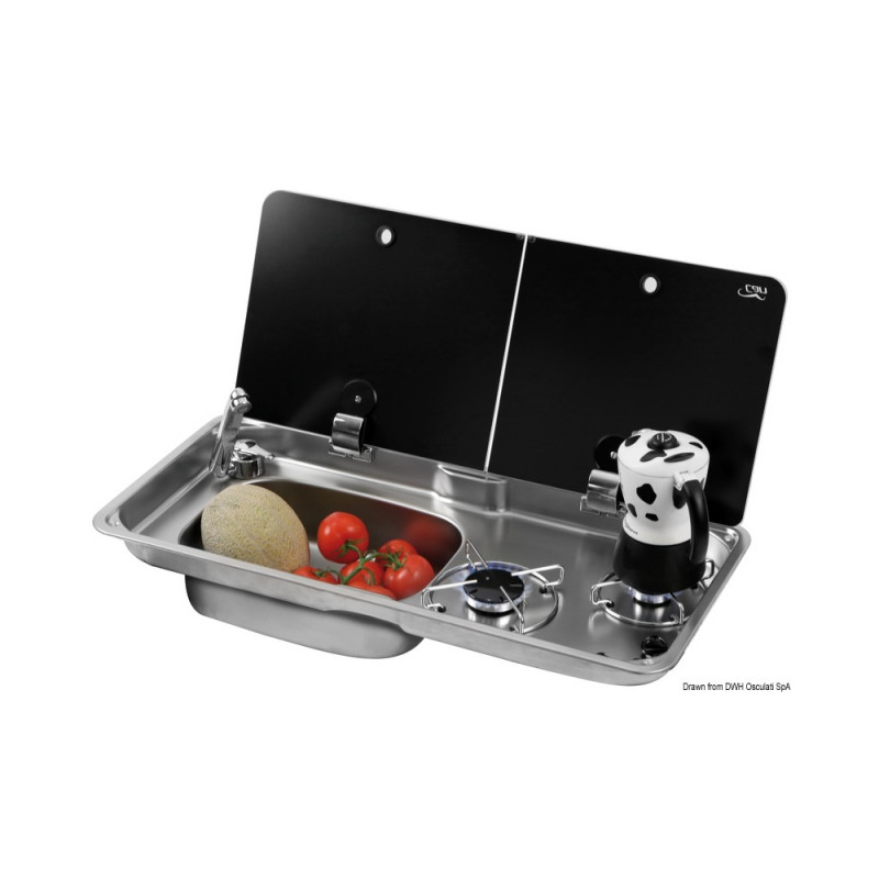 Plan cuisson gauche 2 feux couvercle vitre fume - Osculati