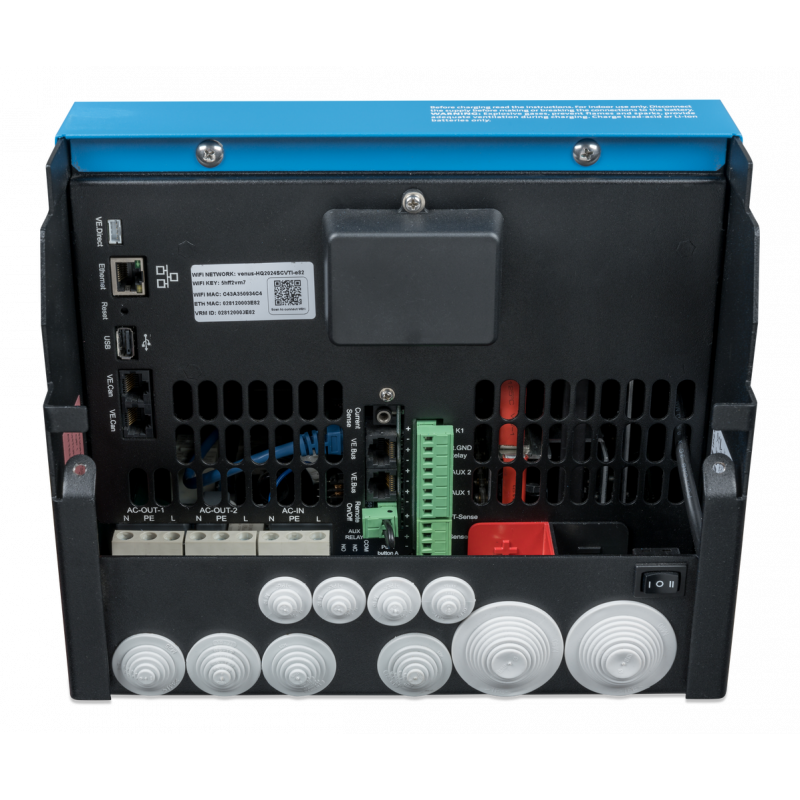 | Port de communication VE.Bu | Pour un fonctionnement en parallèle ou triphasé, contrôle à distance et intégration du système |