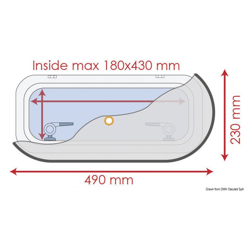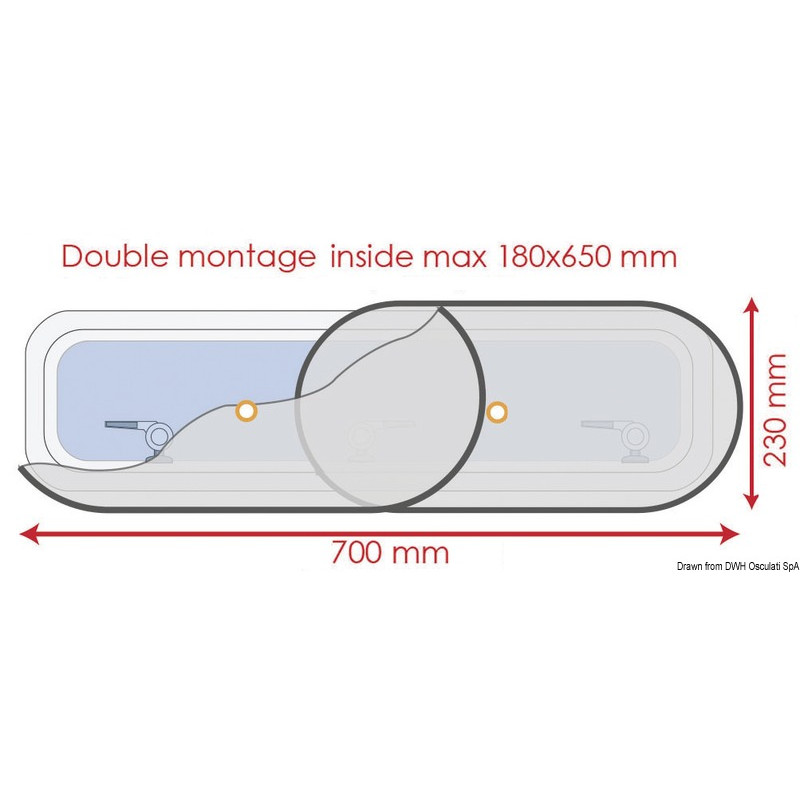 Pour hublot de taille maxi : 180 x 650 mm (double) ou 180 x 490 (simple)