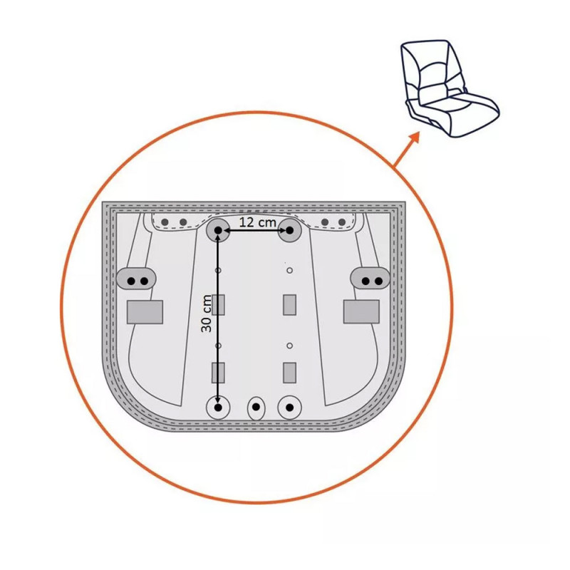 - Entraxe de fixation sur pied de chaise : 300 mm x 120 mm (veuillez vérifier le schéma de fixation en image)