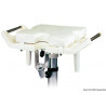 Siège de combat spécial pêche en polyéthylène blanc, équipé de poignées de prise latérales en inox, deux porte-cannes à pêche latérales semi-basculants, un porte-cannes central basculant en aluminium.