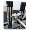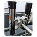 Fixation double en inox marine exclusivement pour les porte-cannes de la marque Seanox. Ce système permet de fixer deux porte-cannes, un de chaque coté du balcon (voir photo).