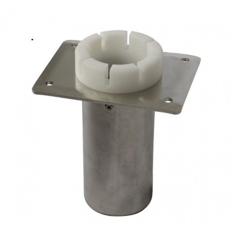 Socle encastrable en inox compatible avec la crosse inox 135° (référence 20002899) pour un montage complet comme porte-cannes ou porte-tangon.