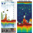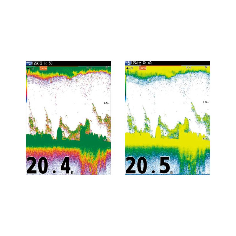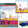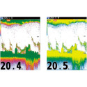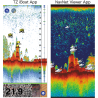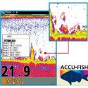 - Supporte simultanément sonde CHIRP et sonde CW permettant d’allier TruEcho CHIRP™, ACCU‑FISH™ et discrimination du fond