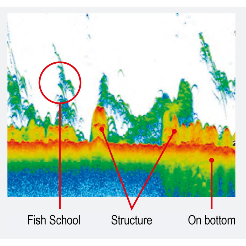 - Discrimination de fond (roche, sable, vase, gravier) pour détection précise des zones de pêche