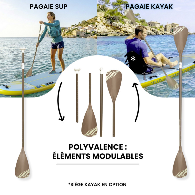 ✓ 3 pagaies 2 en 1 (SUP + kayak)