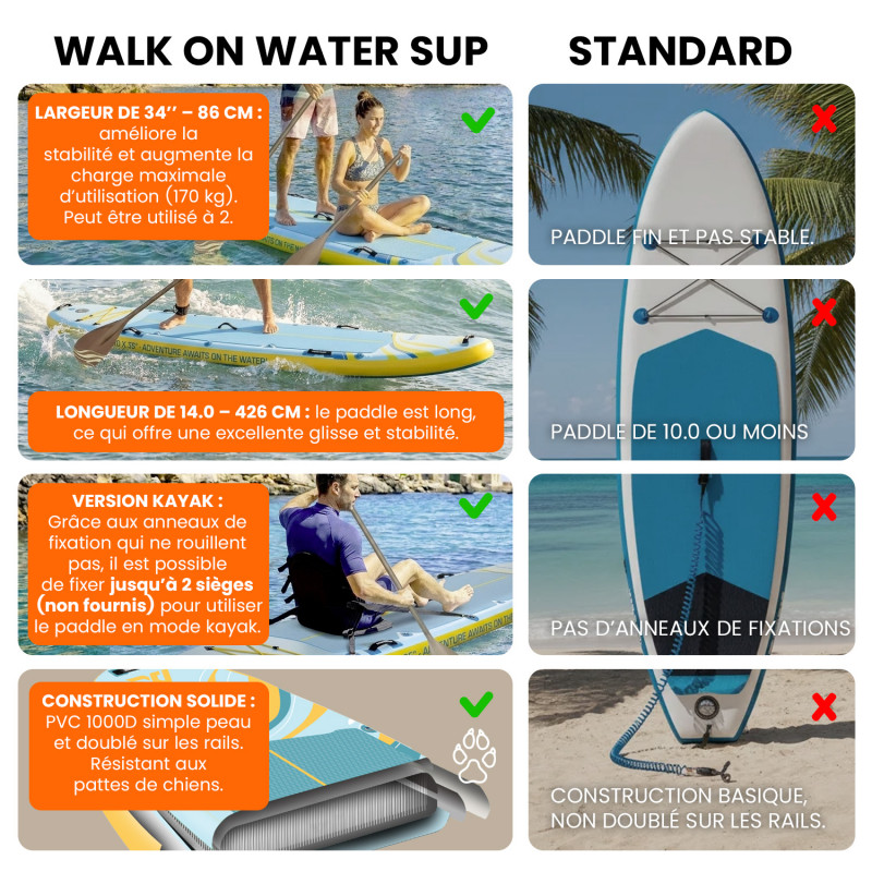 - Pagaies fournies : 3 pagaies 2 en 1 (SUP + kayak)