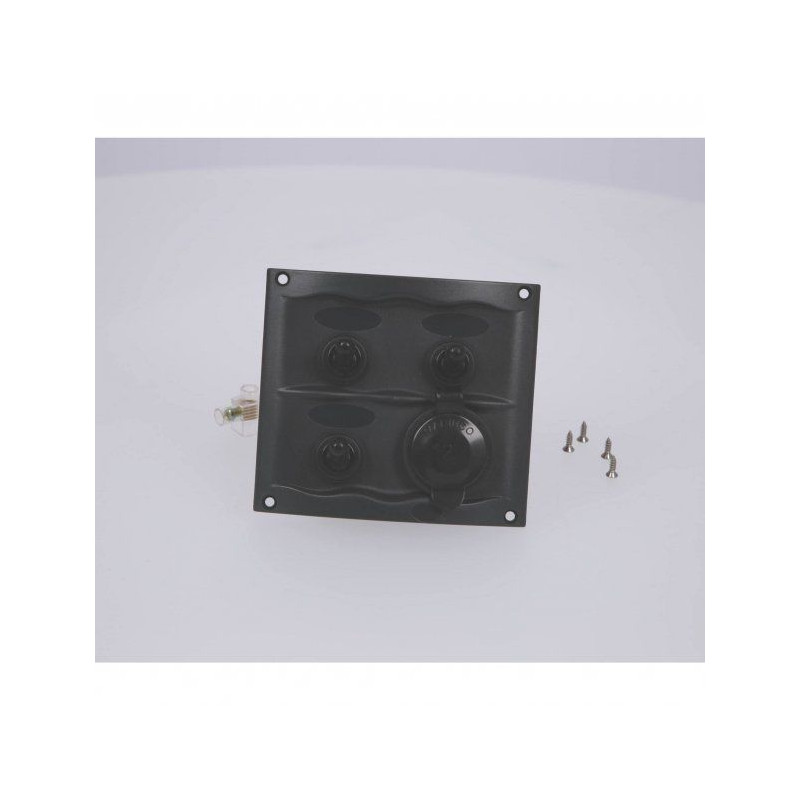 TABLEAU ÉTANCHE NOIR 3 INTERRUPTEURS AVEC PRISE