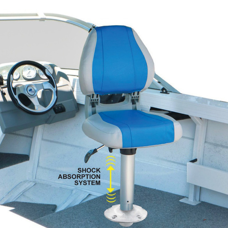 "Ce support de siège s’adresse aux bateaux rapides, semi-rigides et bateaux de pêche qui souhaitent améliorer le confort du pilote. L’amortisseur intégré absorbe efficacement les chocs lors du passage dans les vagues. Il est particulièrement utile lorsque la navigation devient plus sportive."